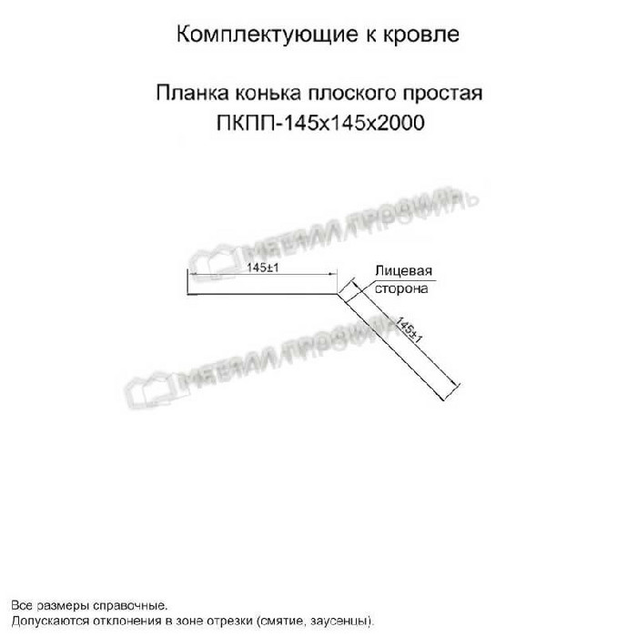 Планка конька плоского 145х145 0,35 Zn