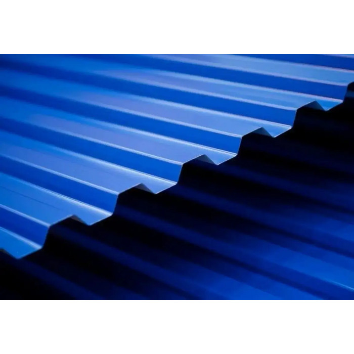 Профлист Металл Профиль МП-20 0,5 Полиэстер RAL 5005 Синий насыщенный применяется для создания кровельных и стеновых покрытий, а также для изготовления заборов, ограждений и других конструкций.