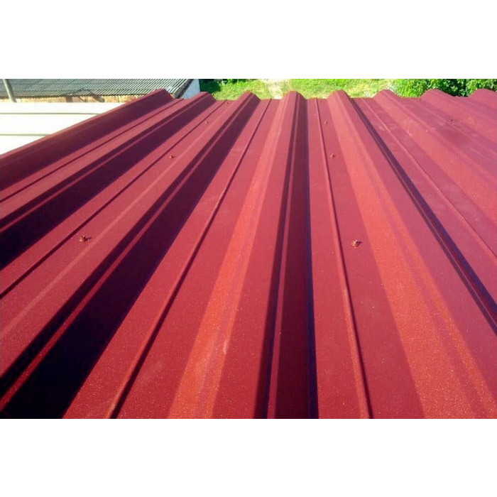 Полиэстеровое покрытие RAL 3009 Красная окись придает профлисту эстетичный внешний вид и защищает его от коррозии и воздействия атмосферных условий.