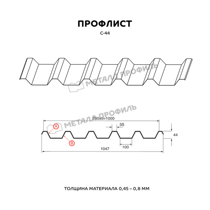 Профиль С-44 обладает прочной структурой и высокой устойчивостью к внешним воздействиям, что делает его идеальным выбором для использования на крышах, фасадах и заборах.