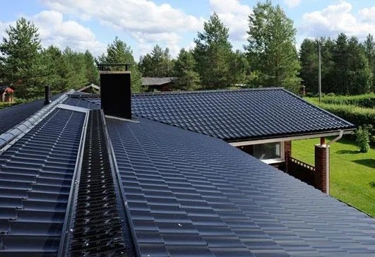 Металлочерепица Ruukki Monterrey Полиэстер наверняка придется по вкусу ценителям авторских дизайнерских решений, которые выбирают красоту, но не в ущерб качеству. Коллекция выполнена на основе 0,5-миллиметровых стальных листов, имеющих цинковый слой для защиты от коррозии и влаги. Декоративный полимерный слой передает всю глубину цветовой гаммы, но при этом обеспечивает выполнение и важных практических функций. Так, поверхность материала защищена от сколов и растрескивания, которые становятся следствием температурных перепадов. Цвет изделий сохраняется на протяжении всего периода эксплуатации. По заверениям производителя, этот период составляет не менее 10 лет.